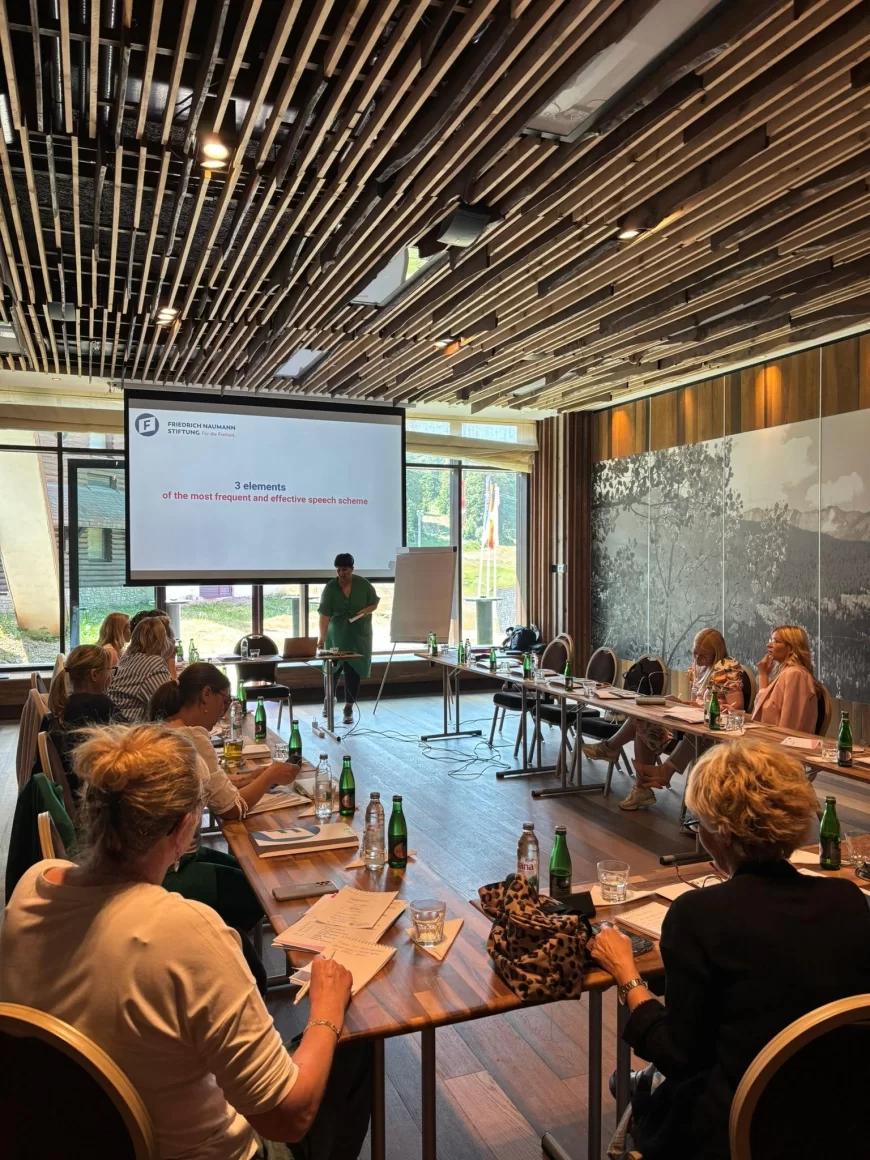 „Akademija BAZA (Balkanska akademija žena) je obrazovni program koji nudi obuku za žene koje žele da postanu političke liderke ili aktivistkinje. BAZA je usmerena na pružanje potrebnih alata i znanja kako bi žene mogle da utiču na političke odluke, razvijaju svoje liderške sposobnosti i učestvuju u procesima donošenja odluka. Program se bavi raznim aspektima političkog života, od zakonskog okvira i lobiranja do komunikacijskih veština i strategija za kampanje. Fridrih Nauman fondacija je tu ključni partner, jer kroz ovu saradnju žene dobivaju pristup stručnjacima, mentorima i prilikama za umrežavanje sa političkim liderima.“
