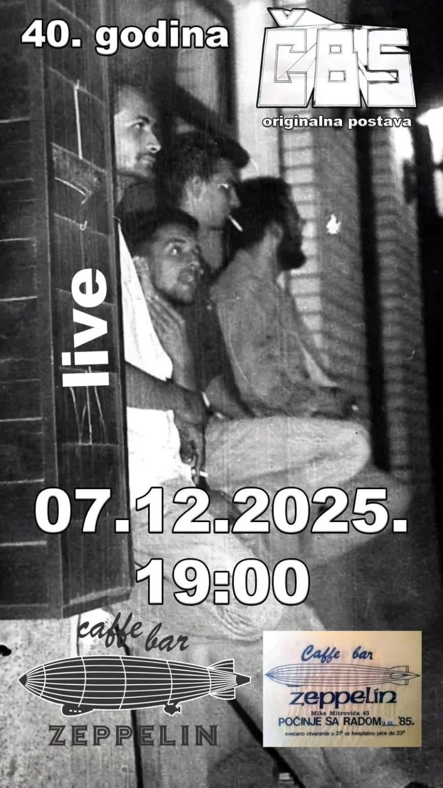 U Caffe baru „Zeppelin“, u nedelju, 7. decembra, šabačka publika i svi ljubitelji kvalitetnog zvuka imaće priliku da uživaju u nastupu legendarnog benda „Čuvaj bližnjeg svog“, koji postoji još od maja 1985. godine. Publika će tom prilikom videti originalnu postavu: